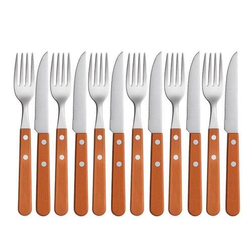 Jogo 6 Garfos e 6 Facas Cabo de Madeira Churrasco Astana 20cm Em Casa Tem