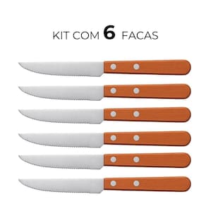 Jogo 6 Facas Cabo de Madeira Churrasco Astana 21cm Em Casa Tem
