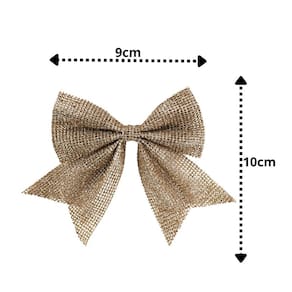 -06 Unidades Laço Telado com Glitter e Lantejoulas Champanhe – 10cm x 9cm com Cordão para Fixação