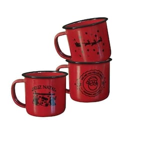 -06 unidades Caneca Esmaltada Decor Natal Vermelho 150ml