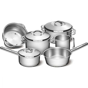 O Jogo de Panelas Tramontina Solar em Aço Inox com Fundo Triplo e Tampas de Inox 6 Peças é um clássico Tramontina. Práticas e duráveis, as seis peças são produzidas totalmente em aço inox, que mantém os alimentos saudáveis já que o material não solta resíduos. Possuem fundo triplo (aço inox + alumínio + aço inox), característica que distribui o calor de forma uniforme, proporcionando um cozimento mais rápido e deixando os alimentos aquecidos por mais tempo, além de economizar mais energia. São peças versáteis que podem ir ao forno para gratinar ou finalizar pratos na temperatura máxima de 260C e ser utilizadas em diferentes tipos de fogões. Possuem tampa com encaixe perfeito e saída de vapor. São ainda muito estilosas. O acabamento em alto brilho faz delas as melhores escolhas para uma cozinha mais bonita. São fáceis de limpar devido ao desenho sem cantos, além de poderem ir à máquina de lavar louças diariamente.