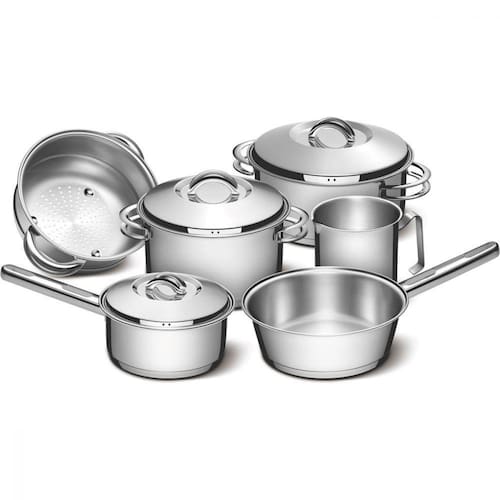 Composição: 01 Panela 16 cm 1,4 L Solar 01 Caçarola rasa 24 cm 4,7 L Solar 01 Caçarola funda 20 cm 3,60 L Solar 01 Cozi-vapore 20 cm 3,2 L Solar 01 Frigideira sem tampa 20 cm 2,20 L Allegra 01 Fervedor sem tampa 16 cm 1,40 L Allegra (sem fundo triplo)