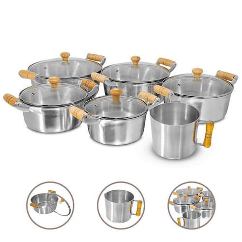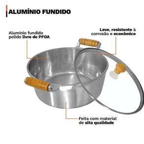 Distribuído por feheros shop Jogo 6 peças alumínio fundido polido grosso tampa de vidro Atenção Os utensílios em alumínio fundido polido oferecem resistência excepcional e excelente condução térmica, garantindo cozimento rápido e uniforme. O material é livre de substâncias tóxicas como pfoa, proporcionando mais segurança na sua cozinha. - utilize utensílios de bambu ou silicone para preservar o acabamento das panelas - evite aquecer as panelas vazias para prolongar a vida útil do produto - produto não compatível com lava-louças Informações do produto: Ideal para quem busca um conjunto robusto, sofisticado e de alta performance. Produzidas em alumínio fundido grosso batido polido, essas panelas garantem cozimento uniforme, resistência a impactos e longa vida útil. O acabamento polido facilita a limpeza e proporciona um visual elegante à sua cozinha. O conjunto inclui caçarolas e leiteira, reunindo tudo o que você precisa para preparar refeições com eficiência e estilo. Especificações técnicas: - durabilidade: o alumínio fundido proporciona maior resistência, ideal para o uso diário e intenso. - distribuição uniforme de calor: aquece rapidamente e mantém o calor de forma homogênea, garantindo um cozimento perfeito. - design funcional: a tampa de vidro é prática para monitorar os alimentos enquanto cozinham, sem perder o calor. - fácil limpeza: o acabamento polido impede o acúmulo de resíduos e facilita a remoção de sujeira. - saúde e segurança: material livre de substâncias tóxicas, como pfoa, para garantir a segurança de suas receitas. - versatilidade no cozimento: compatível com fogões a gás e a lenha. Ideal para qualquer cozinha e tipo de preparação. - eficiência energética: com a sua capacidade de retenção e distribuição de calor eficiente, as panelas permitem que você cozinhe seus alimentos mais rápido, economizando energia e tempo. Ficha técnica do produto medidas : - caçarola 16 cm: d 16 cm x a 7,5 cm - capacidade 1,2 l - caçarola 18 cm: d 18 cm x a 8 cm - capacidade 1,65 l - caçarola 20 cm: d 20 cm x a 8,5 cm - capacidade 2,6 l - caçarola 22 cm: d 22 cm x a 9 cm - capacidade 3 l - caçarola 24 cm: d 24 cm x a 9,5 cm - capacidade 3,8 l - leiteira 14 cm: d 14 cm x a 12 cm - capacidade 1,6 l - material: alumínio fundido polido - cor: prata - cabo: madeira - tampa: vidro temperado - espessura: entre 3 e 4 mm - compatibilidade: fogões a gás e a lenha Antes do primeiro uso cura do produto : - lave todos os itens com esponja macia e detergente neutro. - seque bem com pano limpo e seco. - aplique uma fina camada de óleo vegetal na parte interna das peças. - leve ao fogo baixo por 2 minutos. - deixe esfriar, lave novamente e seque antes de usar. - caso deseje, pode untar os utensílios com uma pequena quantidade de óleo para maior durabilidade Após o uso: - evite choques térmicos, deixando o produto esfriar antes de lavar. - lave manualmente com água morna, detergente neutro e esponja macia. - para remover resíduos queimados, deixe de molho por alguns minutos. - não utilize utensílios metálicos ou produtos abrasivos. Itens inclusos no pacote: - 01 caçarola 16 cm com tampa de vidro - 01 caçarola 18 cm com tampa de vidro - 01 caçarola 20 cm com tampa de vidro - 01 caçarola 22 cm com tampa de vidro - 01 caçarola 24 cm com tampa de vidro - 01 leiteira 14 cm Todas as fotos são reais dos produtos. Qualquer dúvida, estamos à disposição Dúvidas frequentes: 01 - os produtos são novos Tem R: sim, todos os produtos são novos e possuem de 3 meses conforme o fabricante. 03 - é compatível com fogão de indução R: não, este modelo é compatível apenas com fogões a gás e a lenha. 04 - como faço para acompanhar o envio R: após a compra, será enviado o código de rastreamento para acompanhar o pedido até a entrega.