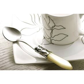Fabricados em aço inoxidável 18/10, apresenta um elegante cabo de acrílico combinado com um refinado anel trançado banhado a prata.