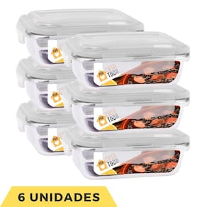 Jogo 6 Potes Hermeticos Vidro Retangular Tampa Travas 640ml - Jogo de Potes Herméticos de Vidro