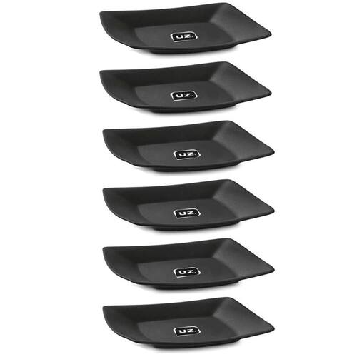 Jogo 6 Pratos 18,5cm Preto Plástico Quadrados Doces Lanches Frutas Petiscos Slim Uz