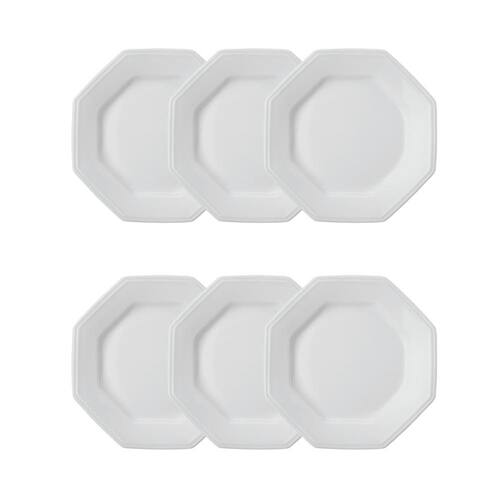 Jogo 6 Pratos de Sobremesa Prisma Brancos 20,5 cm Porcelana Schmidt