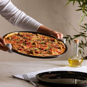 Jogo 6 Pratos de Vidro Opalino Black Friends Time Pizza 32cm Lyor.