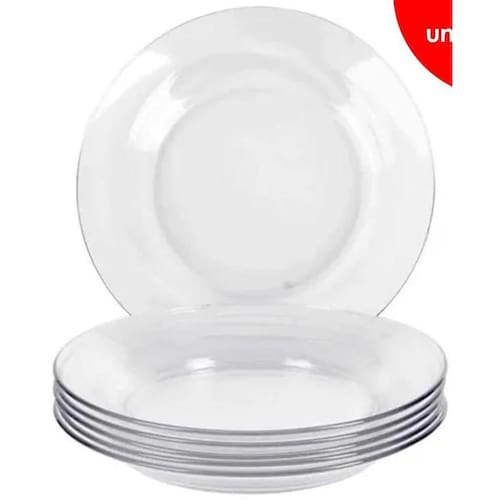Jogo 6 Pratos Fundo Refeição Vidro Transparente Resistente