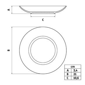 Dimensões de cada prato: 21cm (D) x 3,4cm (A);
