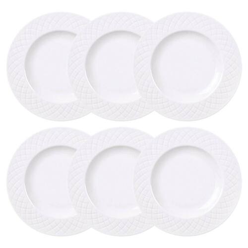 Garantia: 90 dias / Peso unitário: 339g / Cor predominante: branco / Ref.: 7794464835454; Dimensões: 21cm (D) x 2,1cm (A); Conteúdo: 6 pratos para sobremesa; Material: porcelana.