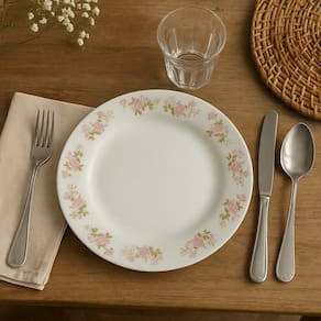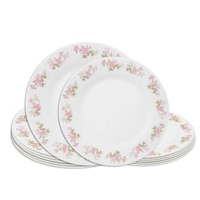 Jogo 6 Pratos Rasos 25,5cm 6 Pratos de Sobremesa 20cm Vidro Branco Flowers Em Casa Tem
