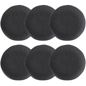 Jogo 6 Pratos Rasos Orgânicos Preto 26,5cm Cerâmica Stoneware Sushi Sashimi Porto Brasil.