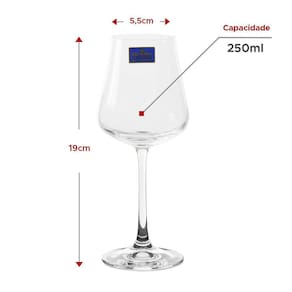 Jogo 6 Taças Cristal Vinho Branco 250ml Conjunto de taças de Cristal Bohemia possuem Tradição secular inigualável pelo seu primoroso processo de fabricação, taças versáteis com características singulares como brilho, transparência e resistência, possuem capacidade de 250ml. Esse conjunto de taças de cristal irá elevar sua experiencia na hora de apreciar um bom vinho, por ser de cristal as lagrimas filetes de vinho que escorrem pela parte interna da taça ficam mais visíveis e dessa forma dá uma noção visual da graduação alcoólica do vinho e de sua estrutura. PRINCIPAIS CARACTERISTICAS: - Conjunto com 6 taças - Capacidade 250ml- Cristal Bohemia- Dimensões: 5,5 x 19cm diâmetro x altura