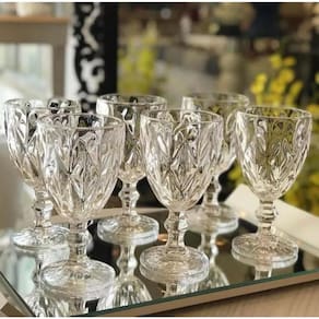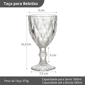 Jogo 6 Taças de Vidro Diamond Clear Vinho Suco Água 300ml