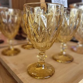 Conteúdo da embalagem: -06 unidades Taça Diamond Diamond Âmbar Golden 340ml Capacidade: 340ml Composição: Vidro Marca: Vivaflor Decor