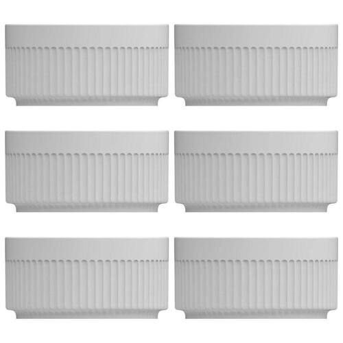 Garantia: 90 dias / Peso: 420g / Cor predominante: branco / Referência: 7891658192246X6Dimensões de cada ramekin: 6cm (D) x 3cm (A);Capacidade de cada ramekin: 50ml;Conteúdo: 6 ramekins;Material: porcelana.Cuidados e limpeza:- Ao utilizar o produto pela primeira vez, lavar bem a peça com esponja macia e sabão neutro;- Lavar com esponja macia e sabão neutro;- Não submeter a peça a chama direta;- Resistente ao microondas, a lava-louças e ao forno.Detalhes do produto:- Classe Única: não são itens quebrados, lascados ou com manchas. Até 30% das peças podem possuir pequenas variações de uma peça para outra;- Podem ser expostos as chamas do maçarico, que serve para dar o acabamento final em muitos pratos/gratinados;- Suportam temperaturas de até 750°C.O ramekin canelado é muito utilizado na culinária ao redor do mundo, é uma pequena tigela de porcelana em formato circular e com a parte de fora canelada. É muito utilizado para servir suflês e o famoso crème brûlée, mas pode ser empregado em diversas outras receitas, conforme a necessidade de seu estabelecimento. Este conjunto de 6 tigelas ramekins da Germer possui capacidade de 50ml cada e é desenvolvido em porcelana branca com design minimalista, permitindo composições com outras peças e possibilitando diferentes formas de apresentação.