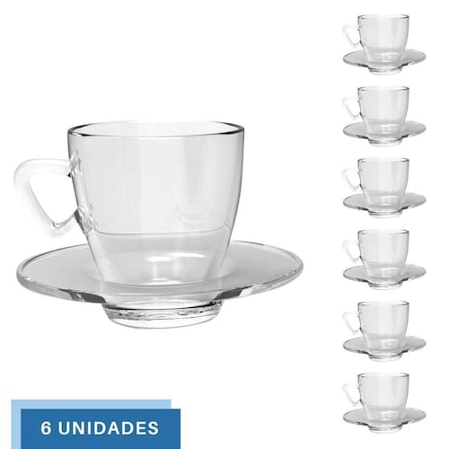 Conjunto de Xícaras de 220ml Conjuntos de xícaras e pires transparentes de 90ml são uma escolha popular para servir bebidas quentes como café e chá. Possuem um design simples e elegante. Feitos de vidro transparente de alta qualidade, essas xícaras permitem que você veja a cor e a textura de sua bebida, tornando-a uma experiência visualmente agradável. O tamanho de 90ml é perfeito para uma dose individual de café ou chá, tornando esses conjuntos ideais para uso doméstico ou para servir pequenas reuniões.