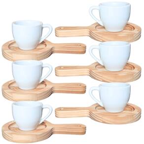 Jogo 6 xícaras café expresso 75ml Porcelana c/ pires panela Peças de porcelana feitas de material de alta qualidade, queimados em alta temperatura, o que os torna fortes, resistentes e com alto brilho, e deixa qualquer ambiente mais bonito e moderno. Nova tendência, mistura de porcelana com madeira, charmosa e moderna para servir em xícaras para todos de sua casa e receber as visitas e amigos. A porcelana tem uma enorme vantagem sobre outros materiais, pois é fácil de limpar e não absorve cheiro, o que deixa a peça e o ambiente livre de mal cheiro. Pires de pinus bem moderno com formato que facilita o ato de servir Ótimas tambem para padarias, cafeterias, buffetts e restaurantes São resistentes ao forno, micro-ondas e lava-louças. Cor Branca Capacidade 75ml OBS: Por se tratar de madeira de pinus natural, entre os pires podem existir pequenas variações na tonalidade das cores da madeira. Pode haver variação de tonalidade entre as peças de porcelana devido a diferentes lotes de queima. Embalagem contêm 12 peças (6 xícaras e 6 pires) Marca: Antilope Decor Porcelanas
