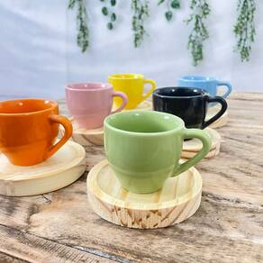 Jogo 6 xícaras café expresso 75ml Porcelana c/ pires redondo