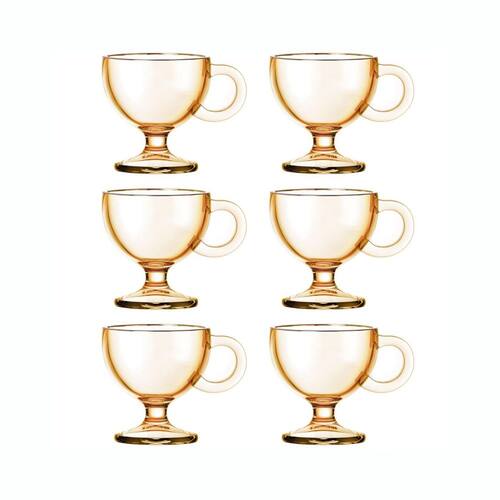 - Dimensões da Peça: 11,5 x 9 x 9cm - Contém: 6 xícaras - Capacidade: 200ml - Material: Vidro - Cor: Cinza com borda Dourada - Tipo de embalagem: Caixa litografada - Marca: Haüskraft Premium