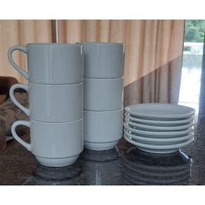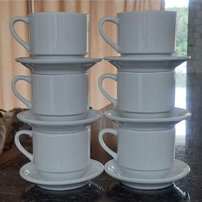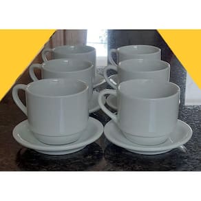 Jogo 6 xícaras de Café e Chá com pires - 200 ml Empilháveis - Porcelana branca