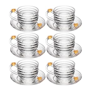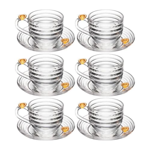 Jogo 6 Xícara de Chá com Pires Little Bee Abelha Colmeia Mel Cristal Ecológico 200ml Lyor