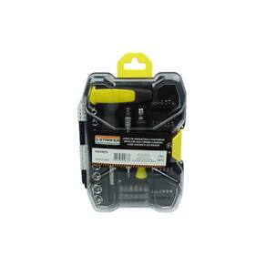 Jogo com 61 peças intercambiáveis de soquetes e pontas bits em aço cromo vanádio com encaixes de 1/4" 6,3mm e 1/8" 3,18mm , chave de precisão, chave reversível com catraca e extensor flexível.