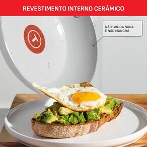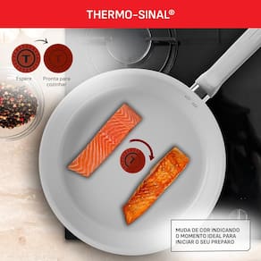 Revestimento Cerâmico: Cozinha saudável, livre de substâncias tóxicas, com alta performance e facilidade na limpeza. Thermo-Sinal® Exclusivo: Indica o momento ideal para começar o preparo dos alimentos, garantindo mais sabor e precisão. Alta Espessura: Distribuição uniforme de calor e resistência ideal para o uso diário. Utensílios Inclusos: 2 peças de nylon que não riscam o revestimento, perfeitas para acompanhar o uso.