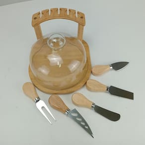 JOGO 7PÇS QUEIJO Altura: 18,5 cm Largura: 18 cm Profundidade: 18 cm Peso: 0,63 Kg Diâmetro do Corpo: 15,9 cm Material: Vidro/Bambu Cor: Transparente/Marrom