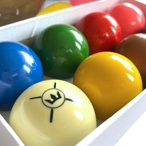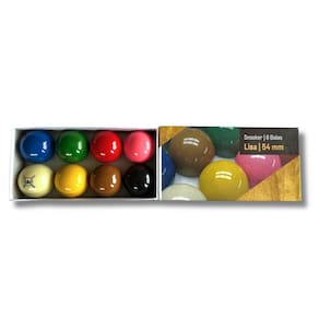 Modelo: Sinuca 8 Bolas (regra brasileira) Jogo importado. Excelente qualidade e ótimo acabamento Material: resina poliéster. Tamanho: 54 mm. Peso unitário das bolas: 150 g Peso total: 1,3 kg