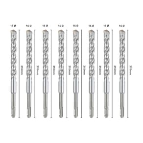 - 8 Brocas SDS Plus 16x310 mm de Aço Carbono e Tungstênio.