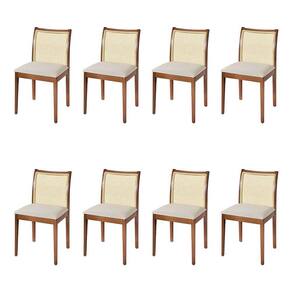 AS IMAGENS SÃO MERAMENTE ILUSTRATIVAS E PODEM SOFRER VARIAÇÕES DE COR E PEQUENOS DETALHES DE ACORDO COM O SEU MONITOR, ILUMINAÇÃO DO AMBIENTE E ATÉ MESMO A SUA PERCEPÇÃO VISUAL.Jogo 8 Cadeiras de Jantar Juliana Jequitibà Terra em Madeira MaciÃa Encosto Palha Linho Bege