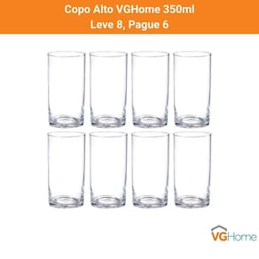 Jogo 8 Copos Altos De Vidro Vghome 350Ml