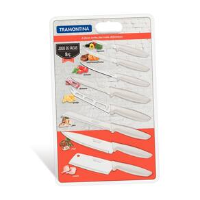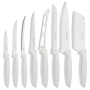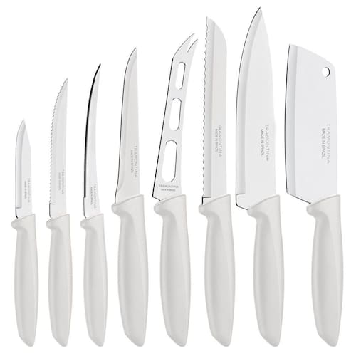 Qualidade e mais charme para a sua cozinha com a Linha Plenus. Versáteis e modernos, os talheres podem compor um visual clássico, quando a opção for pelas cores sóbrias, ou alegre, se a preferência for por cores quentes e variadas. Completa, a linha atende os diferentes usos: do preparo dos alimentos ao serviço de mesa. A Linha Plenus vai do café da manhã ao jantar, do churrasco à mesa de queijos. As lâminas de aço inox e cabos de polipropileno são resistentes e confortáveis durante o manuseio. Podem ir à máquina de lavar louças. Conteúdo do Jogo 1 faca para legumes 3 polegadas 1 faca para churrasco/frutas 5 polegadas 1 faca para tomate 5 polegadas, 1 faca para desossa 5 polegadas 1 faca para queijo 6 polegadas 1 faca para pão 7 polegadas 1 faca chef 7 polegadas 1 Cutelo 5 polegadas Informações Gerais Lâminas em aço inox. Cabos de polipropileno. Recomendações de Uso Antes da primeira utilização, lave bem as peças e seque-as. Tenha cuidado ao manusear produtos cortantes e perfurantes e mantenha-os fora do alcance de crianças. Para maior durabilidade dos produtos, recomenda-se secar bem antes de guardar, mesmo após lavagem em máquina. Para descarte dos produtos e embalagens siga as orientações de reciclagem vigentes. Peso 0,49 kg Ean: 7891112253407