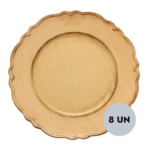 Jogo 8 Sousplats Patinado De Plástico Moon Bege Lyor 33cm