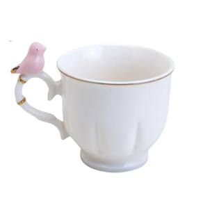Xícara de Café Porcelana Rosa e Branca Birds Pássaro com Pires 100ml Wolff