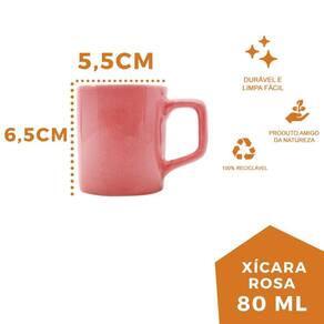 Este conjunto de xícaras para café é uma ótima escolha para quem procura uma opção elegante e charmosa para suas pausas para o café. Cada xícara tem capacidade para 80ml, o que é perfeito para servir um café curto, expresso ou ristretto. A cor rosa é vibrante e alegre, adicionando um toque de cor e personalidade à sua cozinha ou espaço de trabalho. As xícaras são feitas de cerâmica de alta qualidade, o que significa que são duráveis. Além disso, a cerâmica é um material que ajuda a manter a temperatura do café por mais tempo.