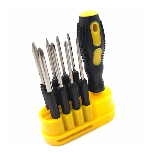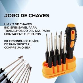 Jogo 9pçs de chaves de fenda e philips com estojo Esse kit é ideal para que você tenha ferramentas para lidar com uma variedade de parafusos armazenada de forma organizada e compacta. Cabe em qualquer lugar.