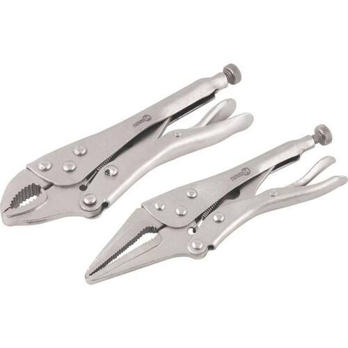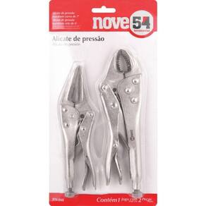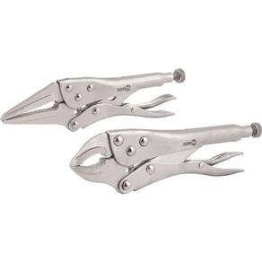 1 Jogo de alicates de pressão, composto por 2 peças, sendo: 1 alicate de pressão mordente curvo de 7 e 1 alicate de pressão mordente reto de 6