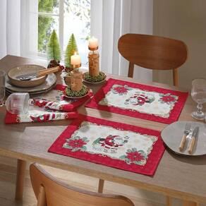 Deixe sua mesa ainda mais charmosa e acolhedora neste Natal com o jogo americano Athenas natalino da Dhler. Com estampa temática sofisticada e cores harmoniosas, ele é perfeito para criar uma composição elegante nas refeições especiais e na decoração de fim de ano.