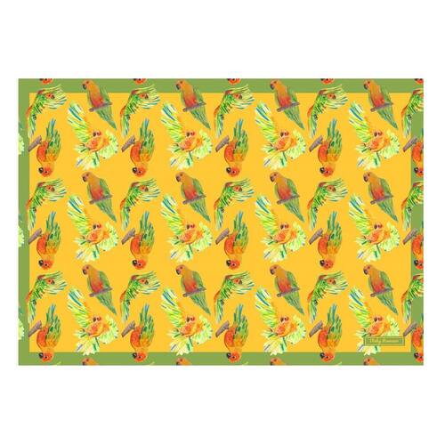 Jogo americano céu do serrado amarelo Jogos americanos deixam a mesa mais colorida e divertida, especialmente quando carregam uma estampa exclusiva, e cheia de história. Os nossos são super práticos e perfeitos para a rotina moderna já que são feitos em papel reutilizável, fáceis de higienizar e com estampas criadas a mão em aquarela com muito amor. Nossos jogos americanos são feitos em papel reciclável com acabamento fosco resistente a água e são também resistentes a convidados desastrados que derrubam vinho, cerveja, café etc..., já que não mancham o mais legal é que por serem feitos de um material bem especial seus jogos podem ser reutilizados em média 10 vezes ou mais dependendo do seu cuidado durante o uso e armazenamento. Cada conjunto contém 6 folhas nas medidas de 46,5x31,5cm. Em tempos de , esse é o produto perfeito para decorar sua mesa com segurança, podendo descartar seus jogos logo após o uso ou higieniza-los com um pano úmido e uma gotinha de detergente caso queira. Escolha um dos nossos lindos modelos exclusivos para alegrar ainda mais a sua mesa.