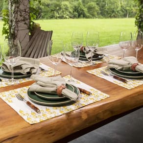 Os jogos americanos Classic Copa&Cia são peças únicas, desenvolvidas exclusivamente para nossa marca pensando nas composições e no decor da mesa posta e em muitas ocasiões de uso. Remetem a delicadeza, harmonia e encantamento na hora de servir, trazem para a mesa a suavidade do puro algodão com acabamento acetinado e detalhes na costura que enriquecem cada peça. São produzidas pensando no aconchego do lar, pois todas as peças passam pelo processo de peletização trata-se de um tipo acabamento têxtil que proporciona ao tecido um aspecto suave que promovem o despertar dos sentidos trazendo a sensação de conforto. Com variedade de estampas que compõe também guardanapos, caminhos de mesa, jogos americanos e toalhas de mesa são com certeza uma ótima opção para suas escolhas em produtos para mesa posta.
