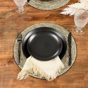 Jogo Americano Copa E Cia Avulso Arlo Preto Jogo Americano Copa e Cia Avulso Arlo Preto - Características Gerais do Produto: - Composição: 80% Fibra de Celulose e 20% Poliéster - Detalhes: Apesar de sua Composição ser a Base de Papel, o Produto não é Descartável.; Peça Vendida de Forma Individual.; Design Exclusivo Copa&Cia.; Armazenar o produto aberto e na horizontal; As cores podem sofrer pequenas alterações de cor, variando de monitor para monitor.; Os objetos que ambientam as fotos não acompanham o produto.; As fotos produzidas são apenas como sugestão de uso com as demais peças da coleção. - Cuidados: Armazenar em local seco e arejado.; Limpar o Produto Apenas com Pano Levemente Umedecido; Evitar contato com objetos cortantes ou superaquecidos.; Não molhar; Não amassar; Não torcer ou dobrar totalmente o produto.; Não utilizar solventes, abrasivos ou alvejantes.; Manter o produto na horizontal - Dimensões (cm): Diâmetro: 38 cm Acompanha o produto: - 1 Peça de Jogo Americano Garantia: - 7 dias/30 dias contra defeito de fabricação