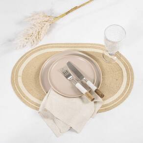 Jogo Americano Copa E Cia Avulso Brazil Nature Emma Jogo Americano Copa e Cia Avulso Brazil Nature Emma - Características Gerais do Produto: - Composição: 85% Juta. 11% Poliamida e 4% Poliéster - Detalhes: Produzido no Brasil.; Peça Vendida de Forma Avulsa (Individual).; Design Exclusivo Copa&Cia.; Armazenar o produto aberto e na horizontal; As cores podem sofrer pequenas alterações de cor, variando de monitor para monitor.; Os objetos que ambientam as fotos não acompanham o produto.; As fotos produzidas são apenas como sugestão de com as demais peças da coleção.; Peça contendo materiais de origem renovável; Por ser uma peça com fibras , pode ocorrer pequenas variações de tonalidade. - Cuidados: Armazenar em local seco e arejado.; Limpar o Produto Apenas com Pano Levemente Umedecido; Evitar contato com objetos cortantes ou superaquecidos.; Não molhar; Não amassar; Não torcer ou dobrar totalmente o produto.; Não utilizar solventes, abrasivos ou alvejantes. - Dimensões (cm): Comprimento: 50 cm; Largura: 35 cm Acompanha o produto: - 1 Peça de Jogo Americano Garantia: - Sem Garantia