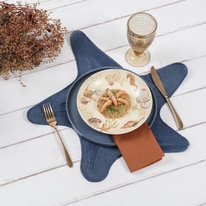 Jogo Americano Copa E Cia Avulso Brazil Nature Estrela Do Mar Marinho Jogo Americano Copa e Cia Avulso Brazil Nature Estrela do Mar Marinho - Características Gerais do Produto: - Composição: 85% Polipropileno (Plástico), 11% Poliamida, 4% Poliéster. - Detalhes: Produzido no Brasil.; Peça Vendida de Forma Avulsa (Individual).; Design Exclusivo Copa&Cia.; Armazenar o produto aberto e na horizontal; As cores podem sofrer pequenas alterações de cor, variando de monitor para monitor.; Os objetos que ambientam as fotos não acompanham o produto.; As fotos produzidas são apenas como sugestão de uso com as demais peças da coleção. - Cuidados: Armazenar em local seco e arejado.; Limpar o Produto Apenas com Pano Levemente Umedecido; Evitar contato com objetos cortantes ou superaquecidos.; Não molhar; Não amassar; Não torcer ou dobrar totalmente o produto.; Não utilizar solventes, abrasivos ou alvejantes. - Dimensões (cm): Comprimento: 50,50 cm; Largura: 51,50 cm Acompanha o produto: - 1 Peça de Jogo Americano Garantia: - Sem Garantia