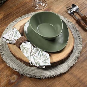 Jogo Americano Copa E Cia Avulso Lana Salvia Jogo Americano Copa e Cia Avulso Lana Salvia - Características Gerais do Produto: - Composição: 100% Fibra de Papel - Detalhes: Flexível.; Possui Detalhe com Franjas.; Apesar de sua Composição ser a Base de Papel, o Produto não é Descartável.; Armazenar o produto aberto e na horizontal - Cuidados: Limpar Manualmente, Armazenar em Local Seco e Arejado.; Não Torcer, Amassar, Dobrar ou Molhar Totalmente o Produto.; Não Utilizar Solventes ou Abrasivos.; Limpar o Produto Apenas com Pano Levemente Umedecido; Evitar contato com objetos cortantes ou superaquecidos. - Dimensões (cm): Diâmetro: 38 cm Acompanha o produto: - 1 Peça de Jogo Americano Garantia: - Sem Garantia