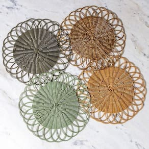 Jogo Americano Copa E Cia Avulso Liam Apolo Natural Jogo Americano Copa e Cia Avulso Liam Apolo Natural - Características Gerais do Produto: - Composição: Polietileno. - Detalhes: Aspecto Natural.; Peça Vendida de Forma Individual.; Design Exclusivo Copa&Cia.; As cores podem sofrer pequenas alterações de cor, variando de monitor para monitor.; Os objetos que ambientam as fotos não acompanham o produto.; As fotos produzidas são apenas como sugestão de uso com as demais peças da coleção. - Cuidados: Não Deixar de Molho.; Armazenar em local seco e arejado.; Evitar contato com objetos cortantes ou superaquecidos.; Não utilizar solventes, abrasivos ou alvejantes.; Limpar manualmente com pano úmido e detergente neutro. - Dimensões (cm): Diâmetro: 38 cm Acompanha o produto: - 1 Peça de Jogo Americano Garantia: - 7 dias/30 dias contra defeito de fabricação
