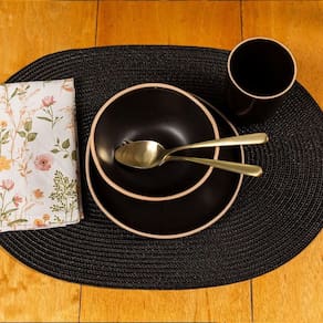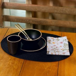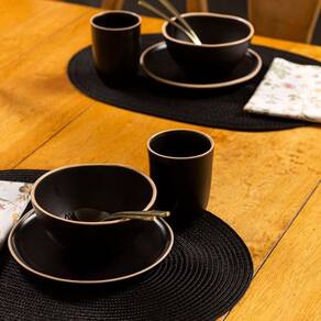 Jogo Americano Copa E Cia Avulso Luna Oval Preto Jogo Americano Copa e Cia Avulso Luna Oval Preto - Características Gerais do Produto: - Composição: 75% Polipropileno (Plástico) e 25 % Poliéster. - Detalhes: Flexível.; Peça Vendida de Forma Individual.; Design Exclusivo Copa&Cia.; As cores podem sofrer pequenas alterações de cor, variando de monitor para monitor.; Os objetos que ambientam as fotos não acompanham o produto.; As fotos produzidas são apenas como sugestão de uso com as demais peças da coleção. - Cuidados: Armazenar em local seco e arejado.; Evitar contato com objetos cortantes ou superaquecidos.; Não molhar; Não amassar; Não torcer ou dobrar totalmente o produto.; Não utilizar solventes, abrasivos ou alvejantes.; Limpar manualmente com pano úmido e detergente neutro. - Dimensões (cm): Comprimento: 48 cm; Largura: 33 cm Acompanha o produto: - 1 Peça de Jogo Americano Garantia: - 7 dias/30 dias contra defeito de fabricação