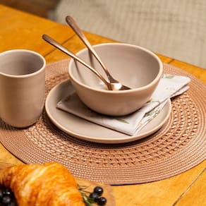 Jogo Americano Copa E Cia Avulso Luna Tressê Nude Jogo Americano Copa e Cia Avulso Luna Tressê Nude - Peça avulsa Características Gerais do Produto: - Composição: 75% Polipropileno (Plástico) e 25 % Poliéster. - Detalhes: Peça Vendida de Forma Individual.; Design Exclusivo Copa&Cia.; São práticas e versáteis; As cores podem sofrer pequenas alterações de cor, variando de monitor para monitor.; Os objetos que ambientam as fotos não acompanham o produto.; As fotos produzidas são apenas como sugestão de uso com as demais peças da coleção. - Cuidados: Armazenar em local seco e arejado.; Evitar contato com objetos cortantes ou superaquecidos.; Não amassar; Não torcer ou dobrar totalmente o produto.; Não utilizar solventes, abrasivos ou alvejantes.; Limpar manualmente com pano úmido e detergente neutro. - Dimensões (cm): Diâmetro: 38 cm Acompanha o produto: - 1 Peça de Jogo Americano Garantia: - 7 dias/30 dias contra defeito de fabricação